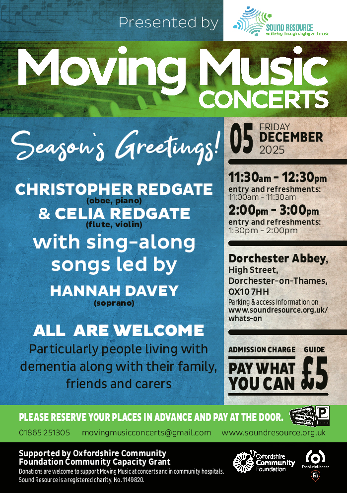 The next Moving Music Concert at Dorchester Abbey is on Friday 5th December 2025, at 11.30-12.30 and 2.00-3.00pm (choose your preferred concert time).
