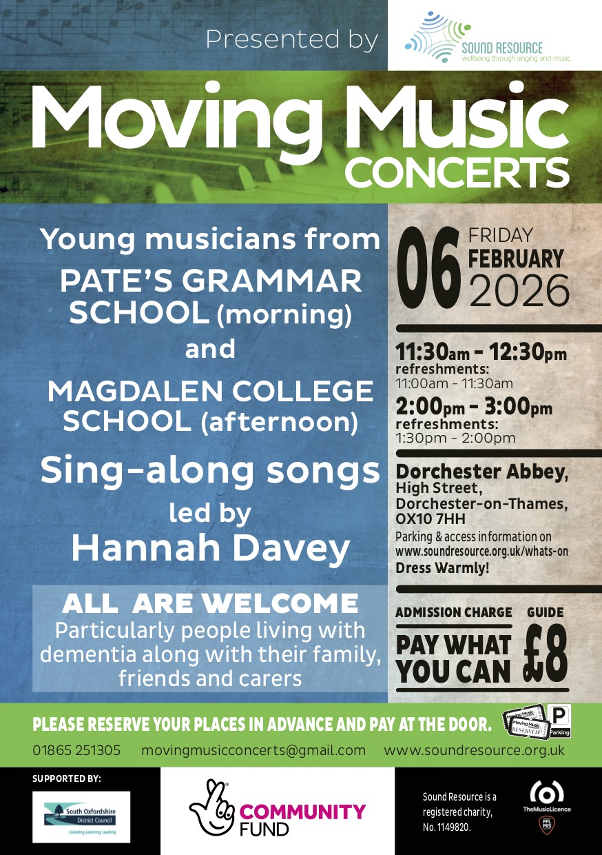 The next Moving Music Concert at Dorchester Abbey is on Friday 6th February 2026, at 11.30-12.30 and 2.00-3.00pm